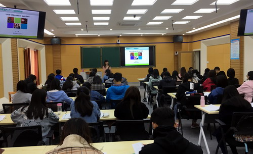 为深入学习贯彻习近平新时代中国特色社会主义思想和党的十九大精神,贯彻落实赣教社政字【2018】23号文件《关于开展江西省高校课程思政教学改革试点工作的通知》和学校关于课程思政工作的相关精神,外国语学院积极推进课程思政试点工作的进行,12月3日上午,学院在香远楼417室外国语学院开展了课程思政公开示范课活动,于霞老师担任主讲,外国语学院党委书记杨杰、副院长罗其娟、课程思政小组全体成员和部分老师参与了此次听课评议。