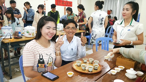 马俊秀老师则身穿汉服,为学员们表演了茶艺。《高山流水》的音乐声里,但闻茶香袅袅,似山中雨后初绽的鲜花撩人心房。一湖春雨涨春池,高山流水有知音,茶之道,不仅生津止渴,更是指引人们修身养性,品味人生。聆听讲解后,学员们纷纷表示中国的茶文化真是博大精深。