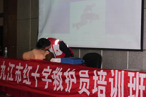 此次培训班邀请九江市红十字会杨新文老师前来授课。讲座中,杨老师采用理论讲授、操作讲解、实践操作相结合的方式,详细讲授了常见意外及突发事件的处理、 单人徒手心肺复苏操作流程、创伤救护的现场急救处理及相关的实用急救知识症与突发伤害救护等基本知识和基本救护技能,尤其在心肺复苏救护操作课上,详细讲解了心脏复苏术的重要性以及实施的主要步骤以及成人、婴幼儿等气道异物梗阻的急救方法进行了讲解和演示。心肺复苏救护操作上,学员们踊跃参加,现场模拟演示了胸外按压以及口对口人工呼吸的具体操作等急救技术,现场进行互动,通过亲自操作人体模型,进一步巩固了所学知识,掌握了现场急救的基本技能。