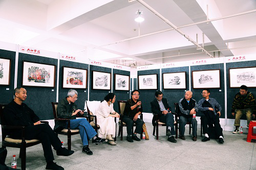 开幕式结束后,与会的省、市艺术家和师生代表进行了学术研讨座谈,大家分别从中国山水画课程教学、中国山水画创作、中国山水画研究等角度对本次汇报展进行了全面、生动的点评和研讨。学术研讨会由中国社科院哲学所访问学者宫妮副教授主持。