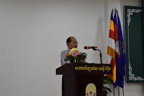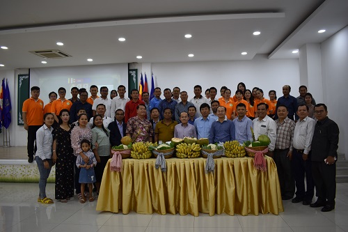2019年11月9日下午三点,亚欧大学在金色大楼13楼会议室举办了2019年送水节庆祝活动。参加本次会议的有亚欧大学董事长梁冬先生(Dr.DUONG Leang)、校长谢索皮先生(Dr.CHEA Sopheap)、副校长孙索特先生(Dr.SUN Setha)、苏宝松先生(Dr.SUOR Bunsou)等校领导,以及特邀嘉宾、行政、教务等部门负责人和各二级学院院长,教职工代表等共约70人。亚欧大学中文系负责人甘敏老师带领6位公派教师和10位汉语教师志愿者应邀参加了此次活动。活动历时两个小时,充满了欢乐的气氛。