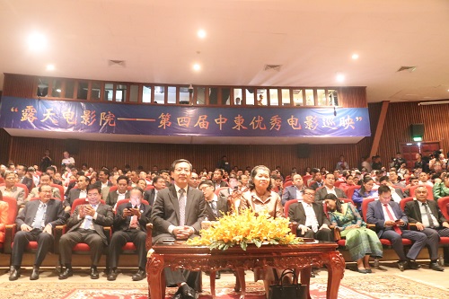 柬埔寨副首相兼议会联络与监察部大臣梅森安(Men Sam on)、中国驻柬埔寨大使王文天、柬埔寨文化部国务秘书韶索坤(SAM SOKUN)阁下、柬埔寨新闻部国务秘书谢占波立波(CHEA CHANBORIBO)阁下、柬中友协主席艾森沃(EK SAM OL)阁下以及中央广播电视总台东南亚中心副主任华春梅女士出席出此次开幕式。王文天阁下、梅森安阁下发表讲话并祝贺“第四届中柬优秀电影巡映”活动隆重开幕。