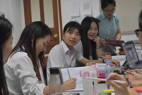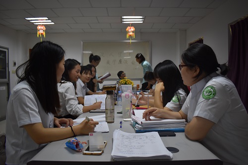 为了更好地了解教学情况,提高教学质量和教师教学能力,柬埔寨皇家科学院孔子学院亚欧大学中文系全体教师于1129日下午在亚欧大学中文系办公室召开了本学期的第一次教学座谈会。此次座谈会由中文系负责人、公派教师甘敏组织召开,其余4位公派教师及10位汉语教师志愿者到场,共同进行交流讨论。座谈会分为志愿者教师分享、公派教师分享、全体教师共同讨论三个部分,老师们针对教学中遇到的问题进行了详细讨论,积极思考与交流,提出了多种解决对策。此次座谈历时2个半小时,气氛热烈,效果显著。