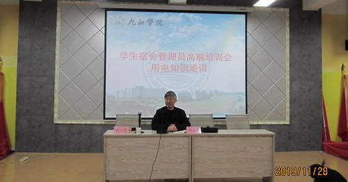 培训班上,江西科技学院宿管处处长王海军、濂溪区消防大队刘杰警官、学生宿舍用电系统荆志民分别就《新形势下如何成为高校学生宿舍“硬核”管理员》《校园防火与逃生》《用电知识讲座》三方面内容做了专题讲座。