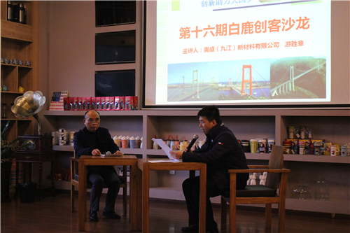11月27日,第十六期白鹿创客沙龙在我校大学科技园靠谱青年创客咖啡举行。全国五一劳动奖章获得者、九江市发明学理事长、奥盛(九江)新材料有限公司总工程师游胜意高工应邀担任沙龙主讲嘉宾。本期沙龙由产学研办公室与机械与材料工程学院主办,靠谱青年创客咖啡协办。机材学院院长张德勤,产学研办公室主任胡慧、副主任宋士华出席了沙龙,科技园企业代表、机材学院重点实验室、教研室教师代表,及机材学院40余名同学参加了此次活动,沙龙由机材学院副院长黄强主持。