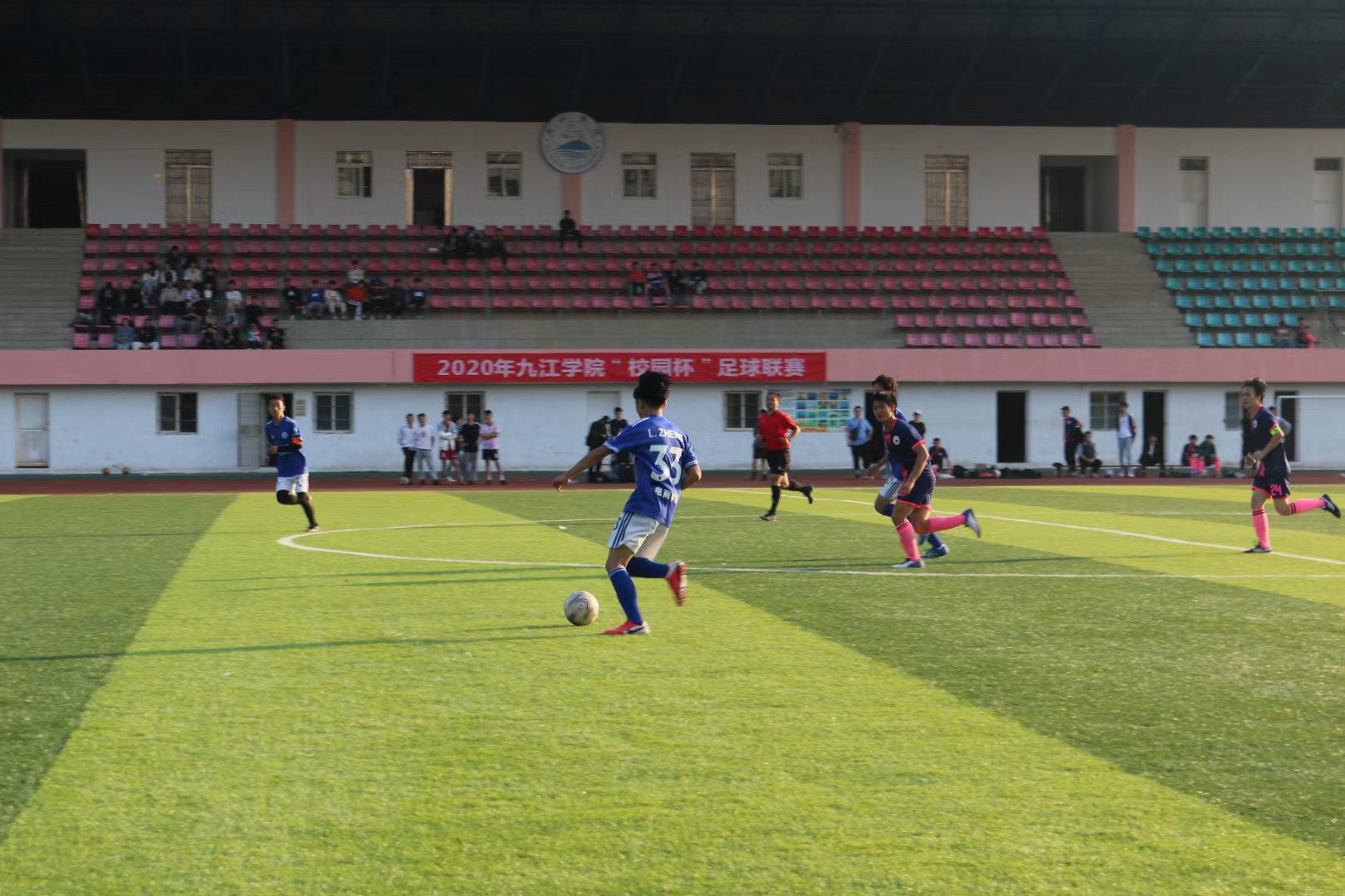 经过一个月的筹备工作,由校团委、学生处和体育学院主办,体育学院承办的2020年九江学院“校园杯”足球联赛于11月4日在我校南区足球场顺利开赛。