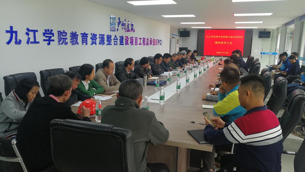 11月16日上午,我校教育资源整合建设指挥部举行廉政教育会,校党委委员、副校长、建设指挥部指挥长夏启国出席并讲话。校纪委有关负责人,指挥部全体人员,广州建筑股份有限公司管理、浙江江南工程管理股份有限公司、江西金昌工程咨询管理公司等参建单位管理人员参加了教育会。