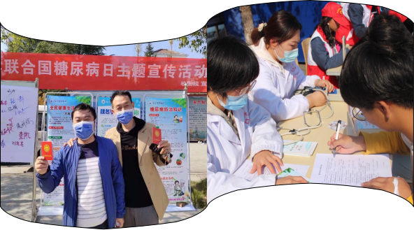 现场宣传方式多样,糖尿病健康教育宣传现场义诊咨询、测量血压、填写调查问卷、展板展示、宣传折页发放、现场签名等系列宣教活动相结合。本次活动发挥和增强了学生唯医服务队员的参与意识,他们充当糖尿病健康教育宣传员,耳濡目染间也知晓了糖尿病有关的健康知识。
