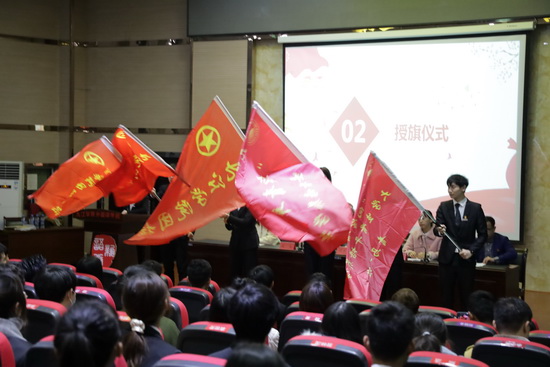 学员代表王璇之同学作了发言。校团委领导为大骨班和团校培训班授旗。