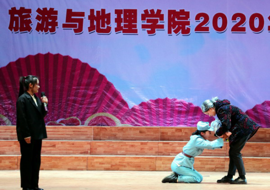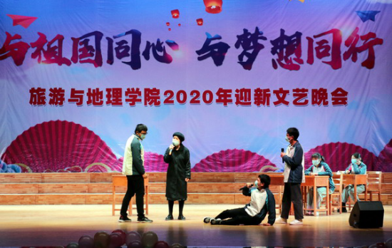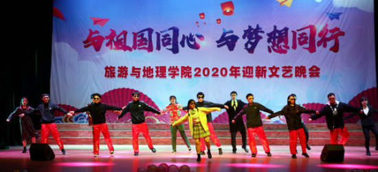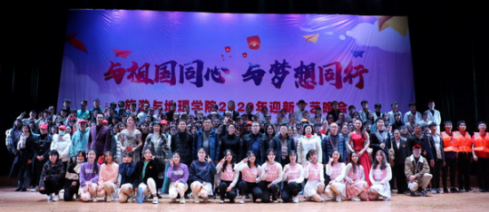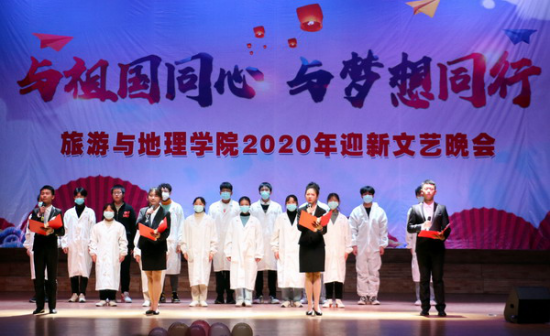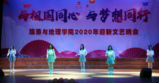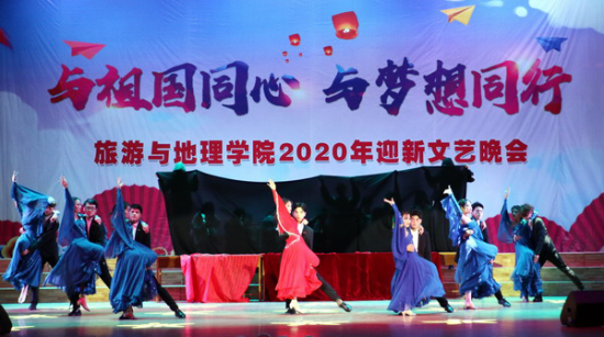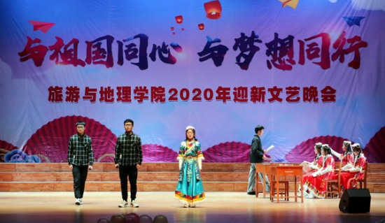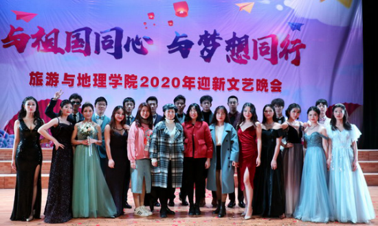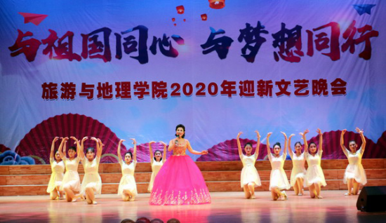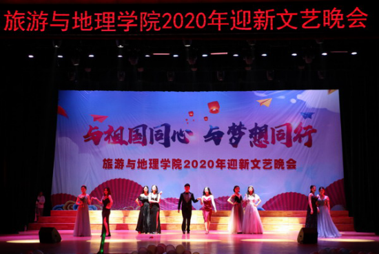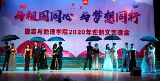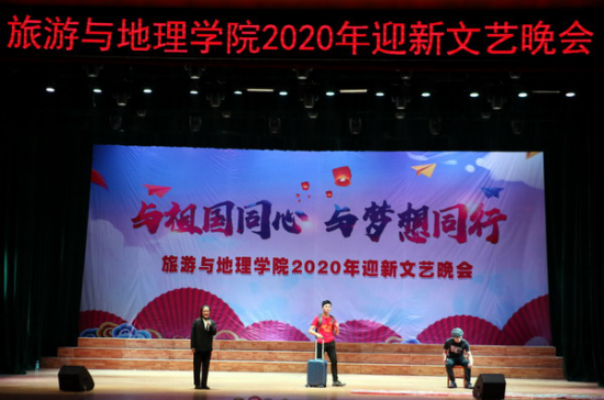 12月11日晚,我校主校区大礼堂内华灯绽放,歌声飘扬,旅游与地理学院“与祖国同心,与梦想同行”2020年迎新文艺晚会举行。副校长陈春生、查振华,校党委委员、宣传部长冯健,校团委负责人和旅游与地理学院党政班子成员,各年级学生代表,2020级学生辅导员、班主任与2020级全体同学一起观看了文艺演出。