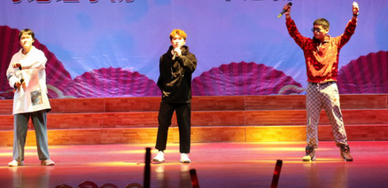 由学院2020校园十佳歌手刘慧磊、王为骄和毛威等表演的《经典歌曲串烧》引起台下热烈掌声和尖叫声。
