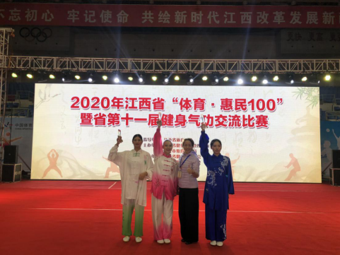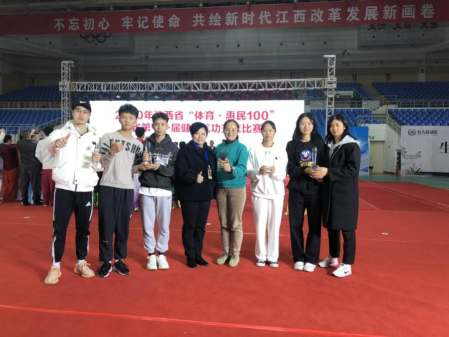 12月11日至14日,2020年江西省“体育·惠民100”暨省第十一届健身气功交流比赛在吉安市体育馆举行,来自全省18个社会部,8个高校部的200多名运动员参加了此次比赛。在高校集体项目比赛中,我校代表队获得了五禽戏竞技功法第一名、易筋经竞技功法第二名和气舞"莲心不染"第二名的好成绩。在个人项目比赛中,我校代表队共获得了七枚银牌、五枚铜牌。
