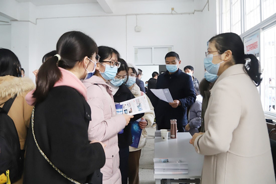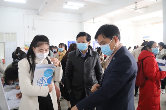为搭建用人单位和毕业生双向选择平台,促进毕业生及时高质量就业,12月13日上午,我校2021届医学类毕业生就业双选会在九江学院附属医院图书馆隆重举行。招聘会吸引了来自浙江、江苏、湖北、江西共51家医疗卫生企事业单位参加,他们带来了1000余个就业岗位。副校长杨耀防、医学部、护理学院,附属医院负责人到场看望用人单位代表及应届毕业生。